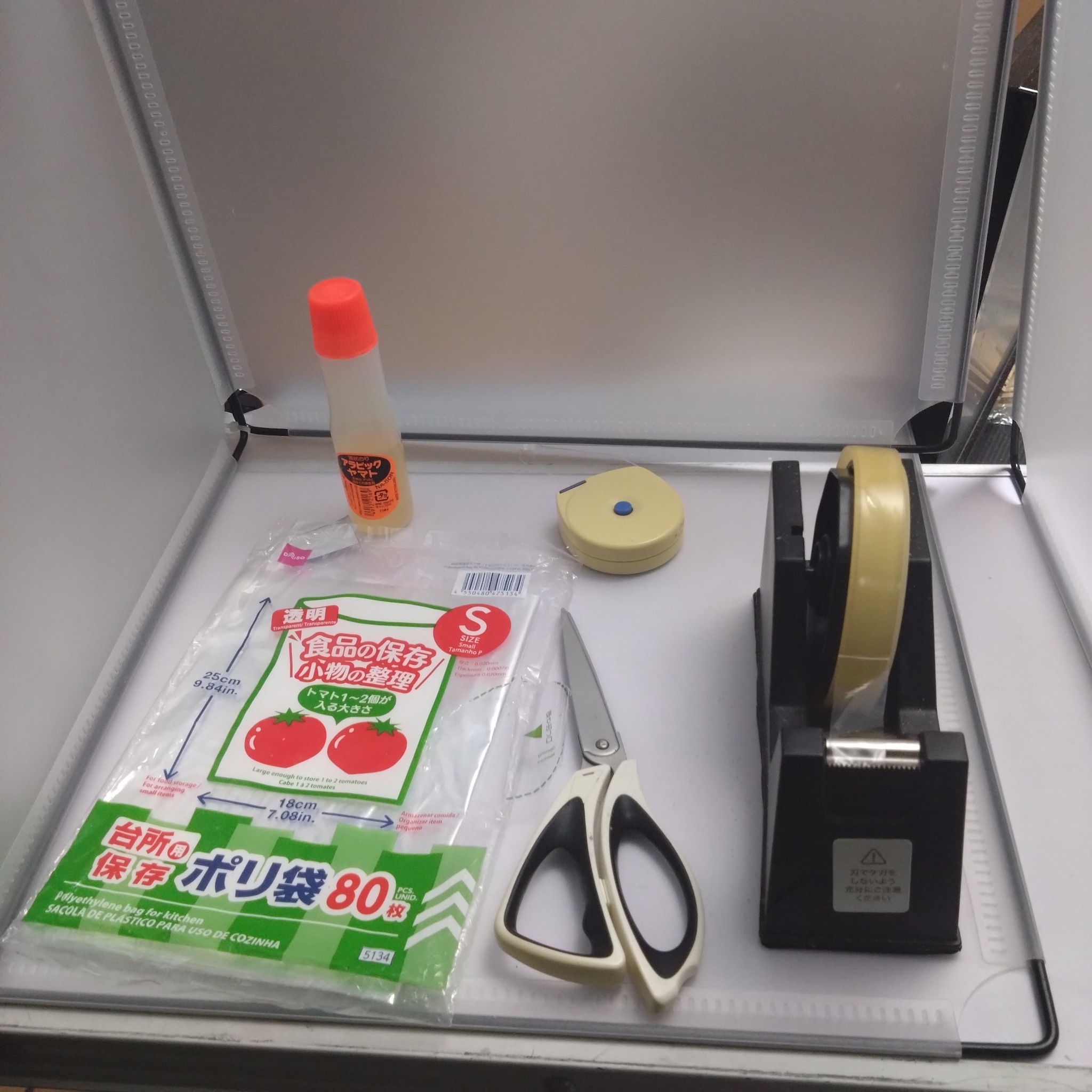 商品撮影には、ダイソーで購入したパネル5枚を結束バンドで固定した