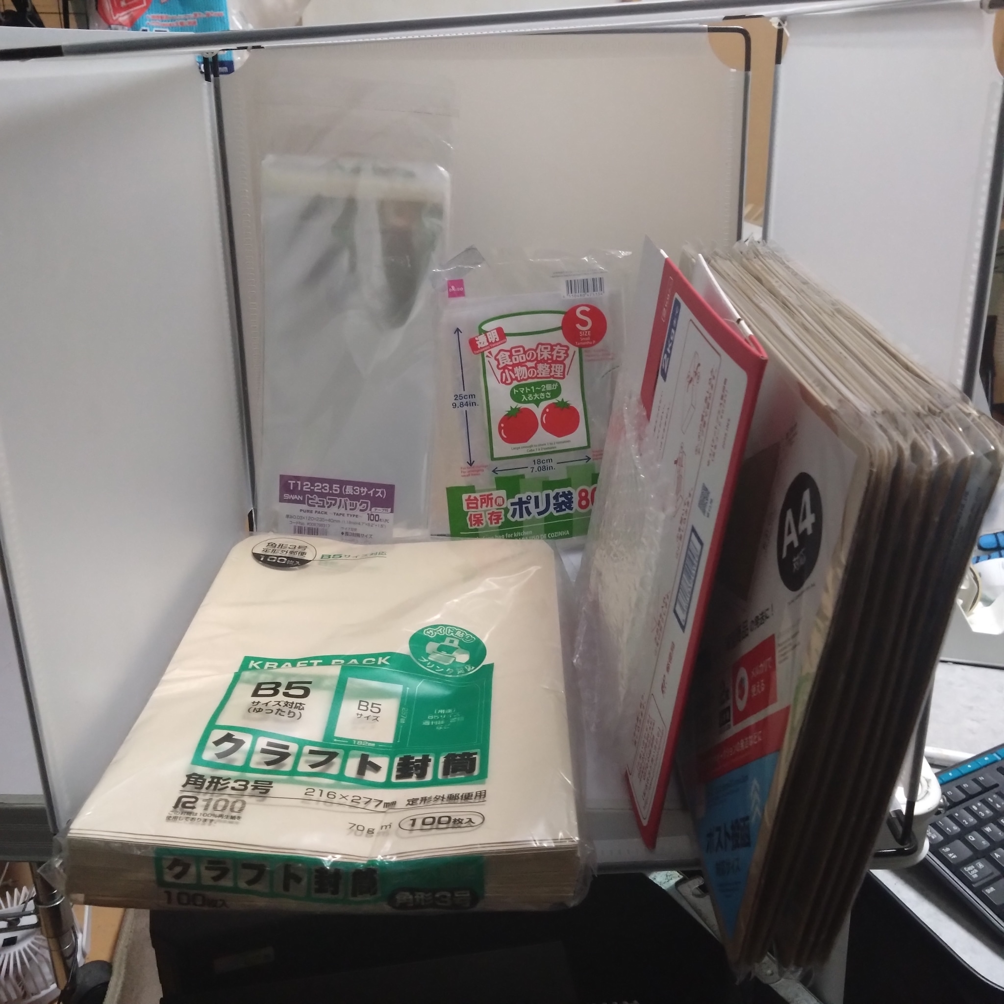 実際の梱包作業では、商品をOPP袋やビニール袋に入れ、