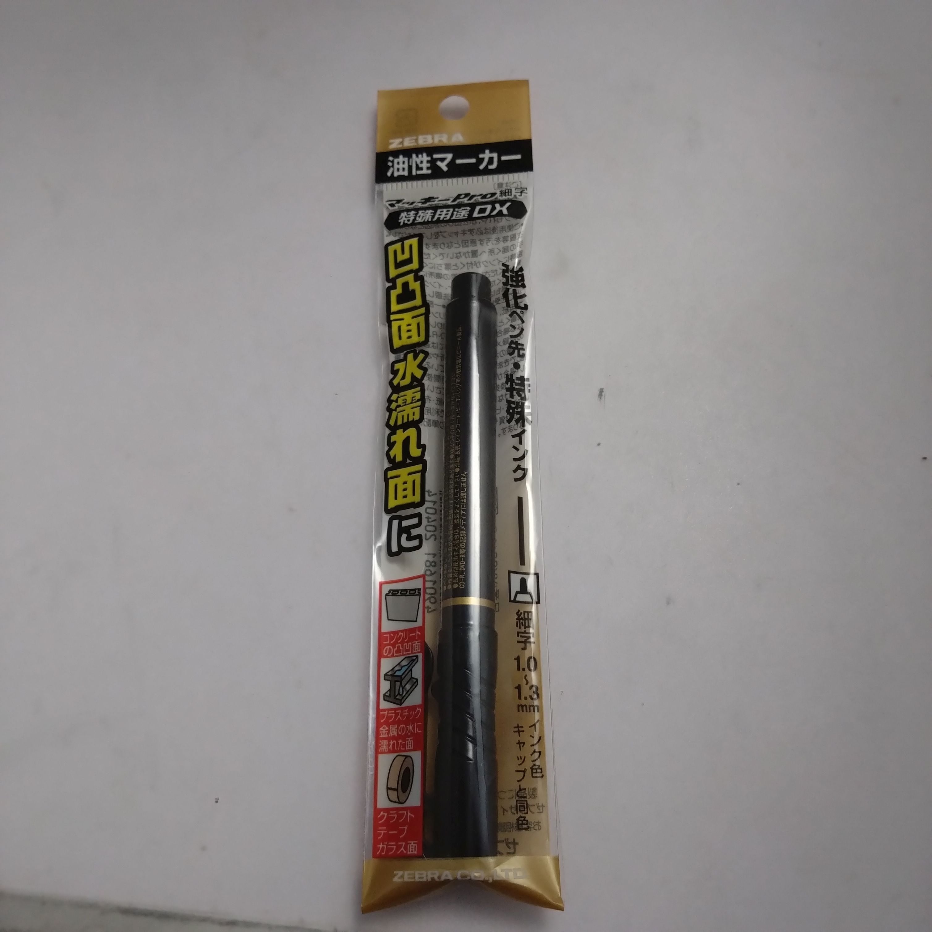 ZEBRA(ゼブラ)の「マッキープロ 特殊用途DX」細字(黒)は、工業用や事務用途など幅広いシーンで使える油性マーカーです。耐久性が高く、安定した書き心地が特徴です。
