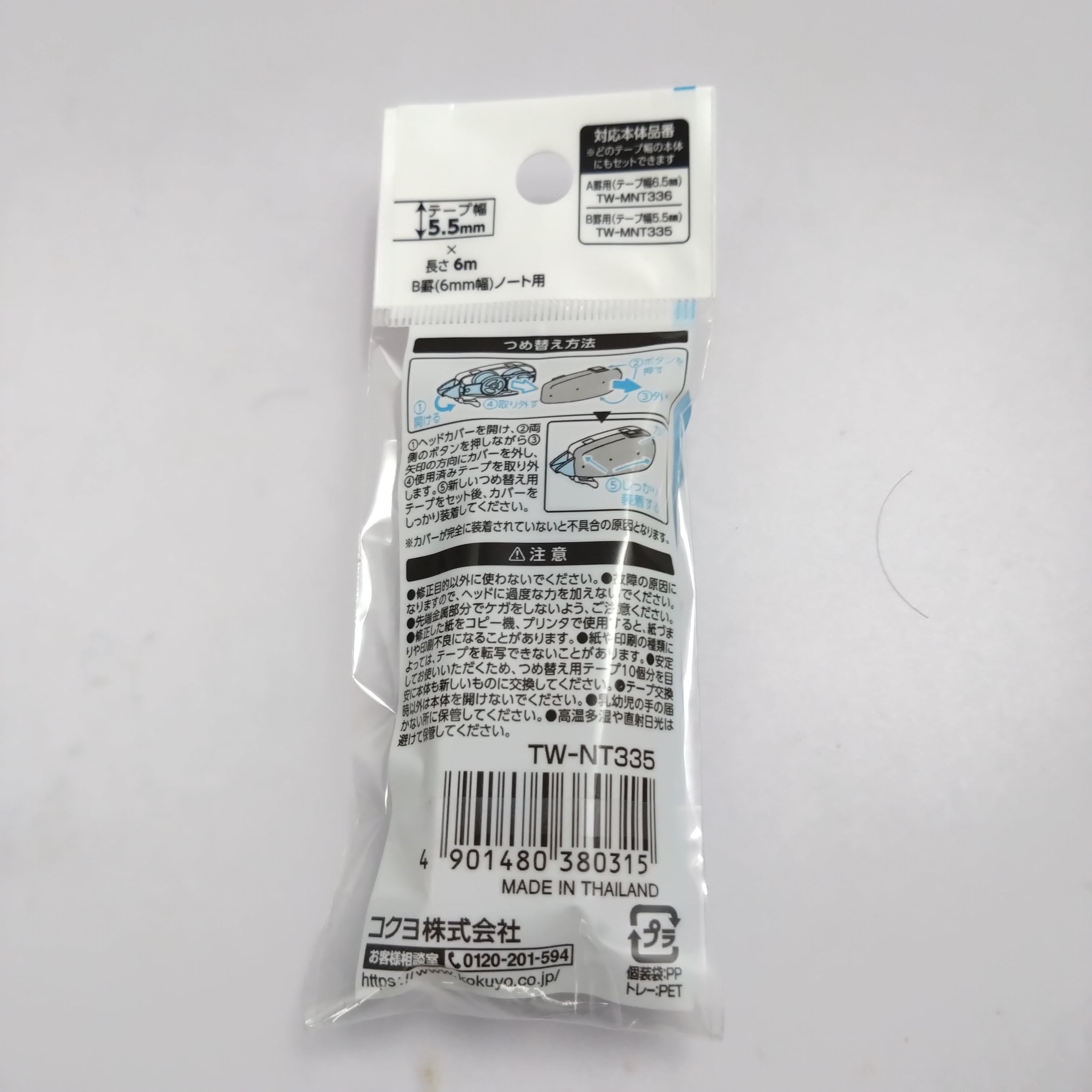コクヨの修正テープ詰め替え用 TW-NT335 は、スムーズな引き心地と均一なテープ幅が特徴の交換カートリッジです。